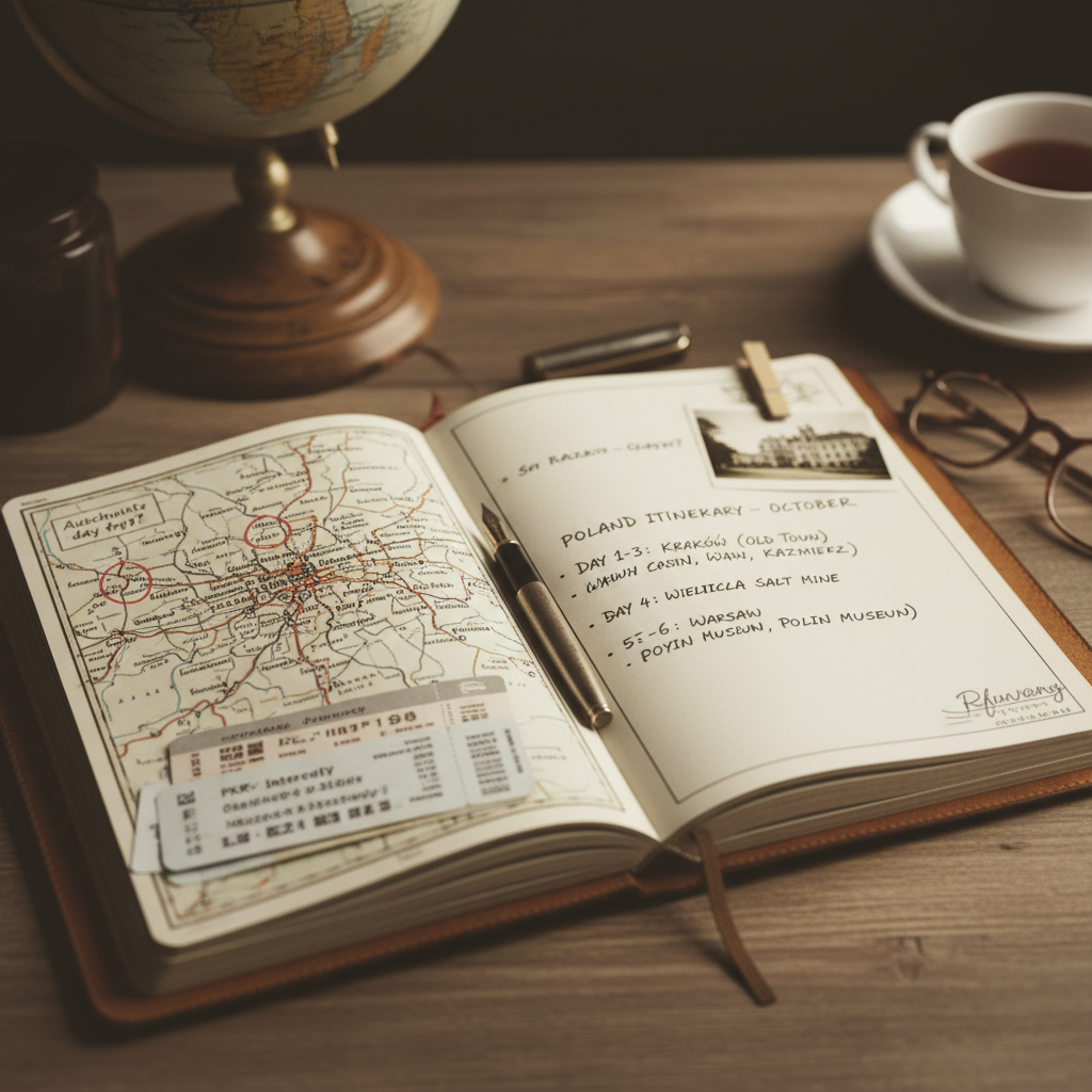 - Zdefiniuj temat wyjazdu – wybierz kluczowy motyw przewodni (np. zamki gotyckie, podziemia wojenne, zabytki UNESCO).