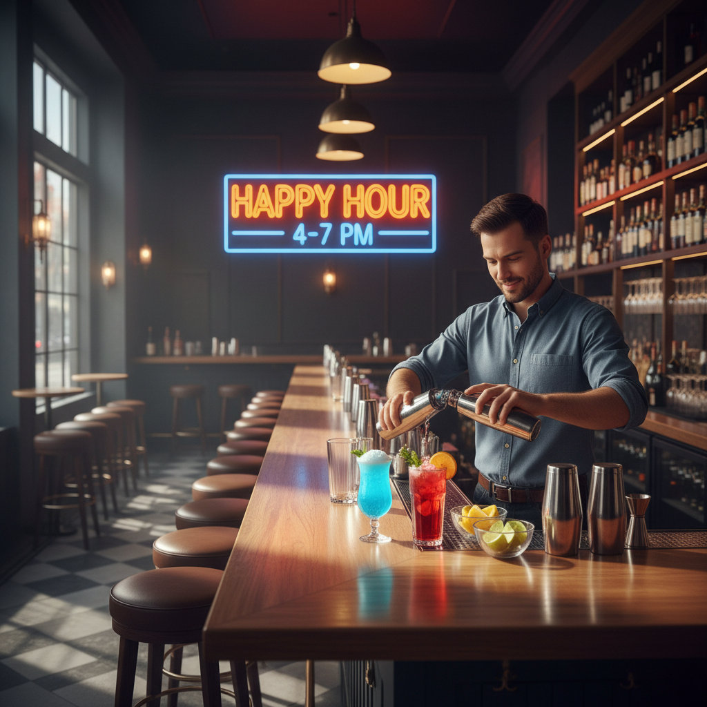 | Happy hour | Zniżka na napoje o określonej porze | Ograniczone godziny |