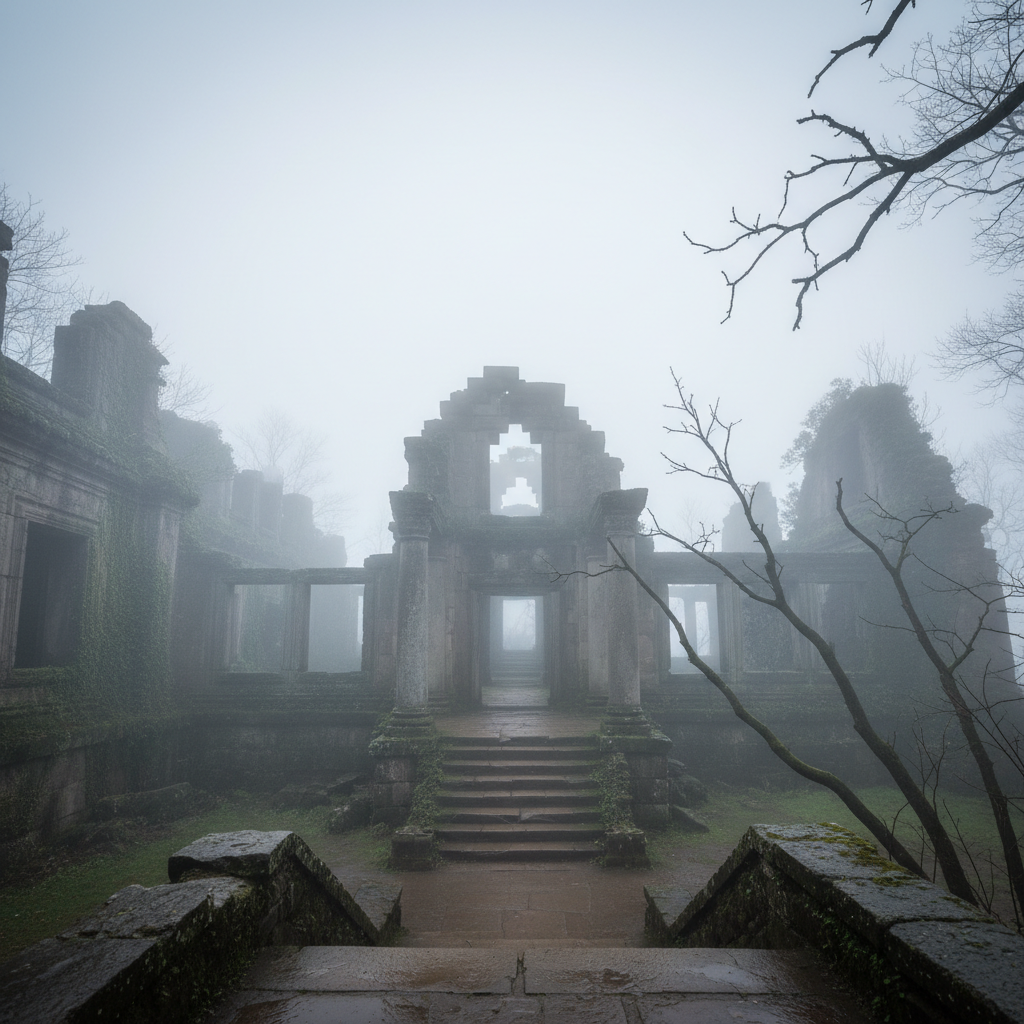 Ruiny pałacu w Lubelszczyźnie skąpane we mgle – nieoficjalny zabytek, który przetrwał dzięki opowieściom mieszkańców